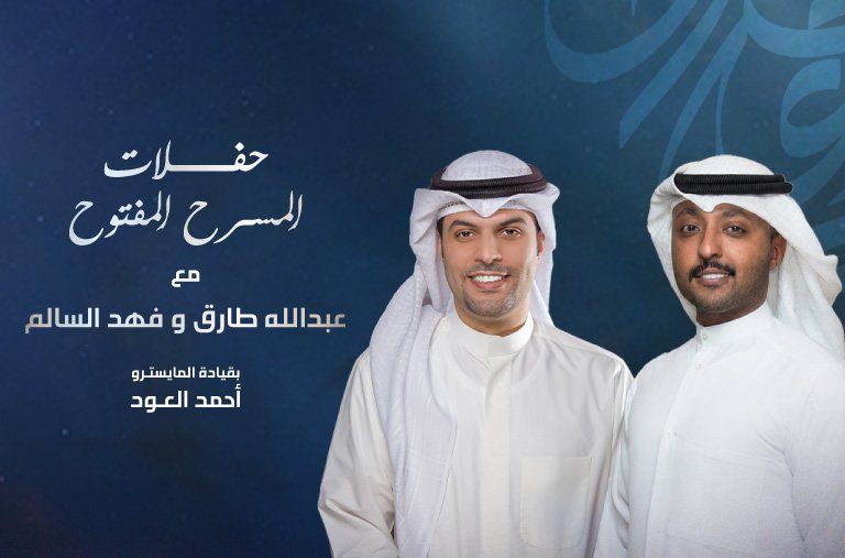 تستمر حفلات المسرح المفتوح بأجوائها المبهجة البسيطة الخالية من الرسمية في شتاء الكويت المنعش، حيث نلتقي مساء الخميس 22 يناير مع اثنين من نجوم الأغنية الشبابية الكويتية وهما الفنانين عبدالله طارق وفهد السالم وأجمل الأغنيات الكويتية والخليجية بمصاحبة الفرقة الموسيقية يقودها المايسترو د. أحمد العود. يعتبر الفنانان عبدالله طارق وفهد السالم من الأصوات المتميزة في جيل الشباب الحالي. انطلقت مسيرة عبدالله طارق الغنائية في العام 2012 عندما فاز بالمركز الأول في البرنامج الغنائي «سمَّعنا صوتك» على محطة «مارينا إف إم» الإذاعية. أما فهد السالم فقد دخل مجال الغناء في سن مبكرة جدّا، فلم يكن عمرُه قد تجاوز 12 عامًا، حينما شارك في عدد من الجلسات الغنائية، أما بداياته الحقيقية فكانت في العام 2013، حيث بدأ في التعاون مع كوكبة من الشعراء والملحنين لتقديم مجموعة من الأغنيات. وحاليًا يحتل السالم وطارق مكانةً متقدمة بين المطربين الشباب الخليجيين.