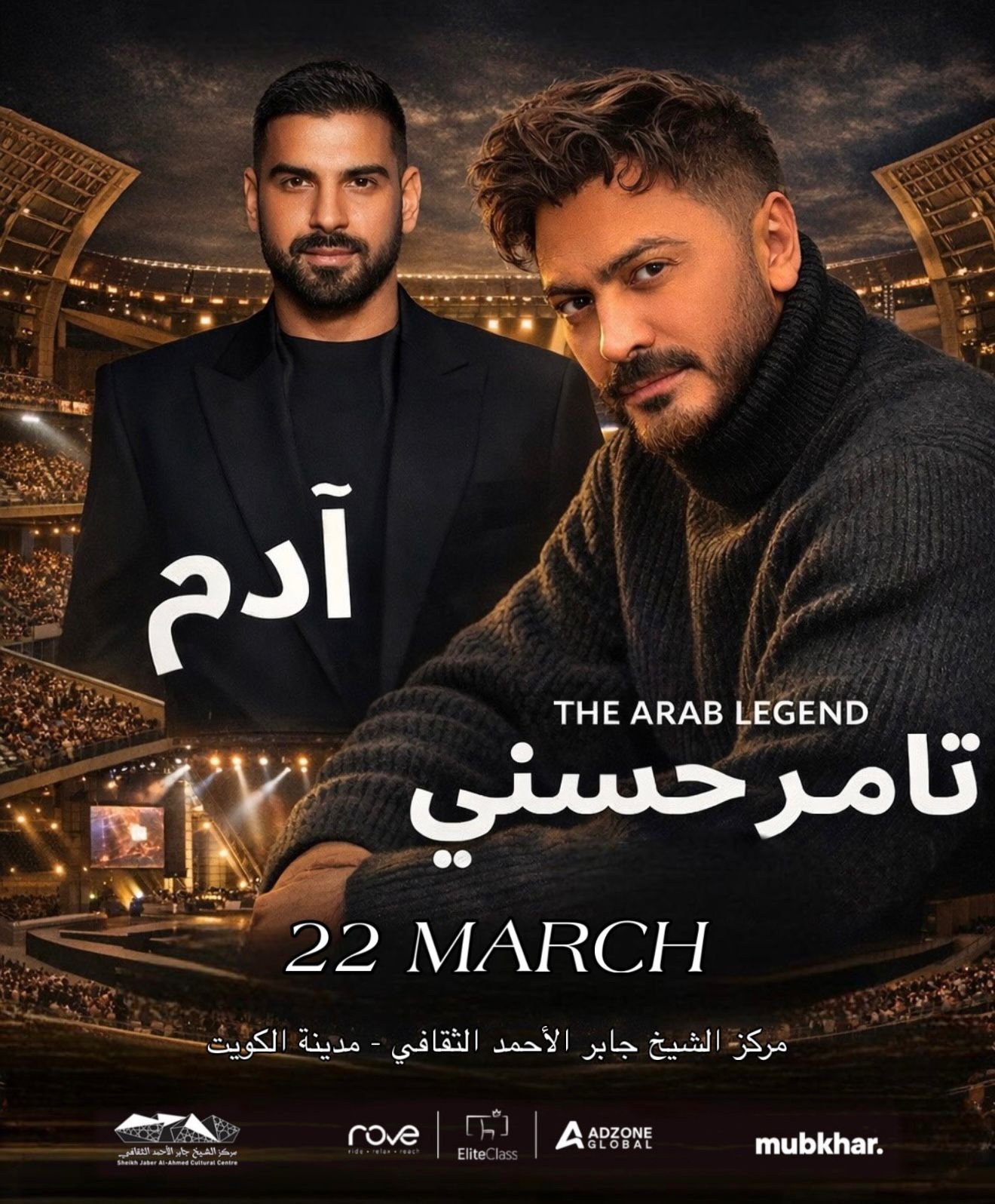 ليلة غنائية استثنائية يحييها النجم تامر حسني بمشاركة الفنان آدهم، في أمسية تجمع بين الطرب المعاصر والأداء الحي وسط إنتاج مسرحي ضخم وأجواء جماهيرية مميزة.